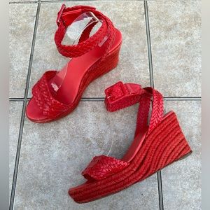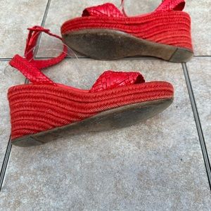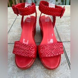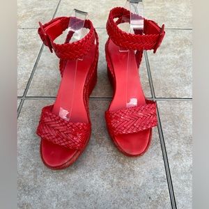 Hermes Red Braided Patent Leather Sofia Espadrille Wedges