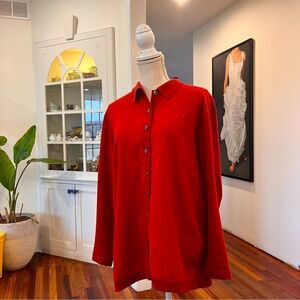 Stylish Hermes red button-up shirt for men, perfect for any occasion.
