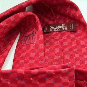 Hermes Red and Pink Silk Tie with Geometric Pattern 7865 UA