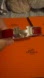 Elegant Hermes bracelet. Features a striking red band. Accented with silver hardware. Perfect for any occasion. Size GM with box and pouch
