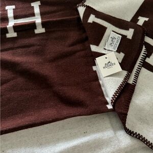 Luxurious Hermes throw in rich brown and cream. Elegant and warm.