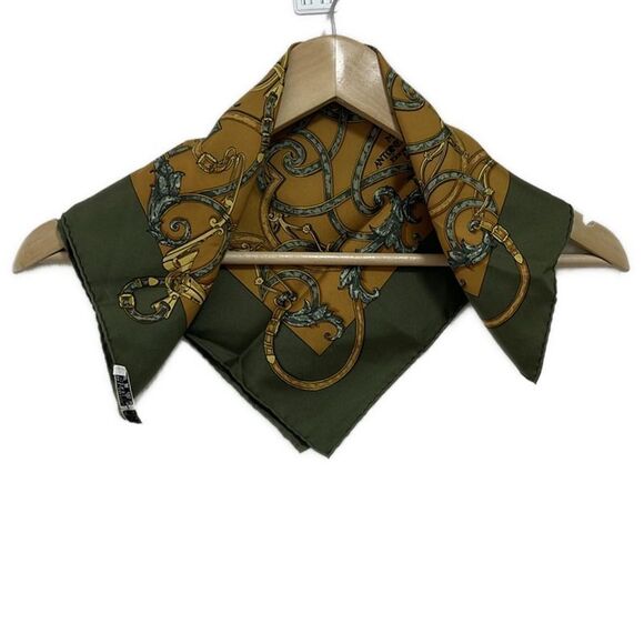 Hermes Scarf Petit Carré Brown And Khaki L'instrvction DV ROY