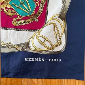 Hermes Scarf equestrian square horse bit Americana swords crest royalty rope