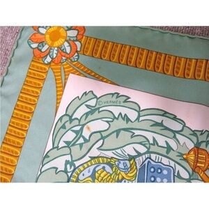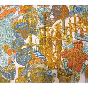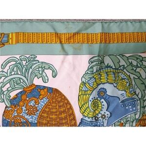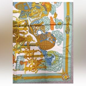 Hermes Silk Scarf with Orange and Blue Accents