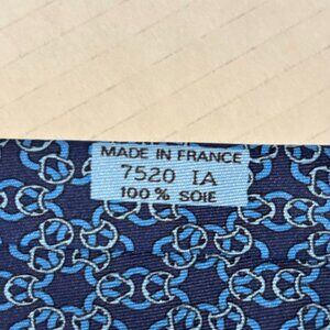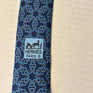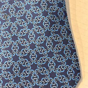 Hermes Silk Tie Navy Blue Chain Pattern 100% Silk Designer Mens Classic