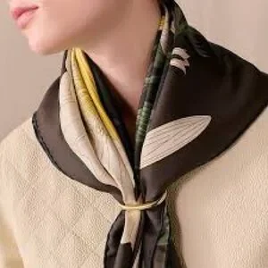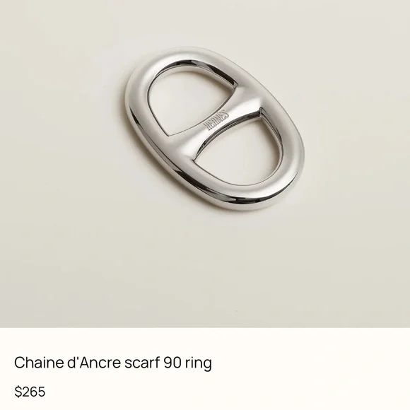 Stylish Hermes scarf ring in sleek silver. Enhances any accessory collection.