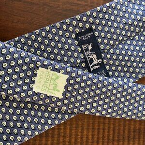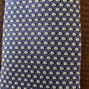 Beautiful Hermes Paris 100% silk tie. Excellent condition. Small light taupe snails adorn a blue/gray backdrop.