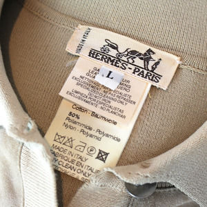 Hermes Suede Tan Knit Cotton Button Up Collared Polo Shirt L Short Sleeve Top