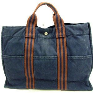 Hermes Tote bag Fourre Tout Navy Brown Woman Authentic Used Y3654