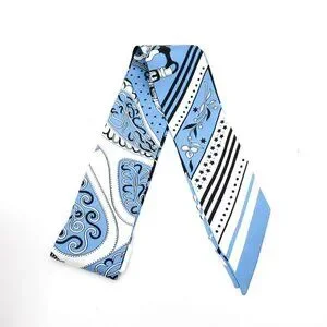 Hermes Twilly Scarf Festival Des Amazones Silk Blue White