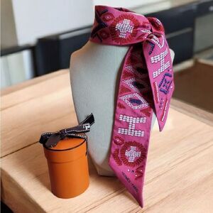 Hermes Twilly Kelly Amperle Scarf Silk All-Over Pattern Pink Blue White WBox/Bag