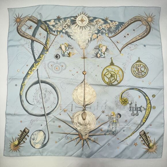 Hermes Universe Carré 90 Silk Light Blue Scarf