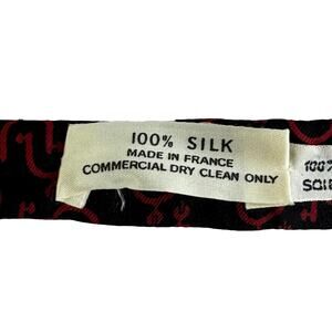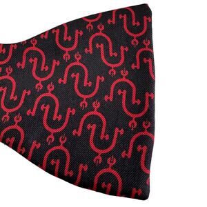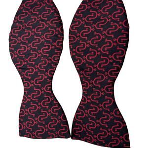 Hermes Vintage Red Spur Bow Tie. 100% silk. Black background with red spur design. Adjustable. Made in France.