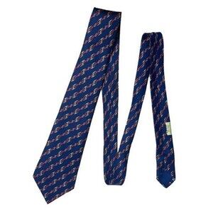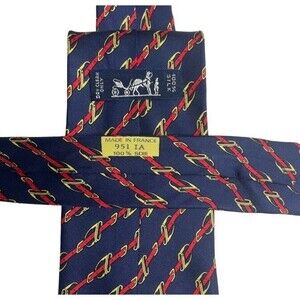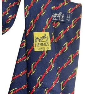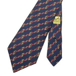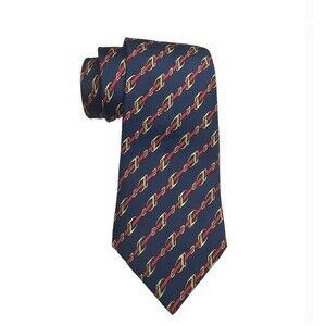 Hermes Vtg Silk Navy Chain Buckle Horse Bit Tie Made In France Quiet Luxury EUC