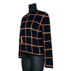 Hermes Womens Tattersall Sweater Wool & Silk EU 40 Pullover Orange Black NWT