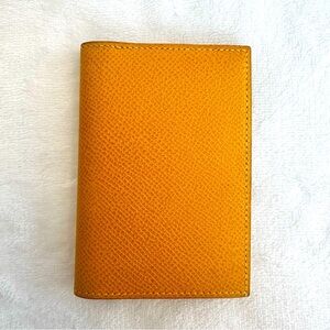 Pre owned Hermes leather card holder in a vibrant yellow color. Perfect for organizing your essentials.