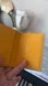 Pre owned Hermes leather card holder in a vibrant yellow color. Perfect for organizing your essentials.