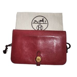 Hermes authentic Dogon Red Leather Wallet with Pouch, dust bag gold hardware