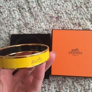 Hermes bangle bracelet saffron yellow with gold plated rim. Comes with dust bag and box. 100% authentic as all my items are. Will do a bundle deal for both Hermes bracelets. Brand new worn only twice.
