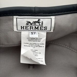 Hermes grey denim beret with leather trim. Size 57. In excellent condition.