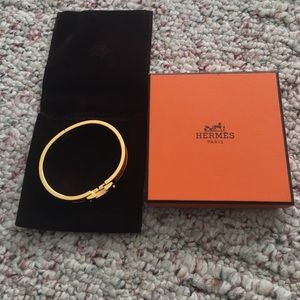 Hermes narrow bracelet in enamel Gold plated hardware. Orange. Worn twice. $600 brand new. 100% authentic as all my items are! Will do a bundle discount for both Hermes bracelets!