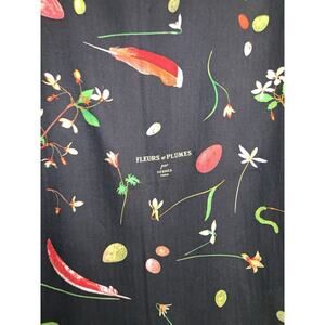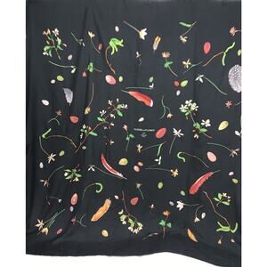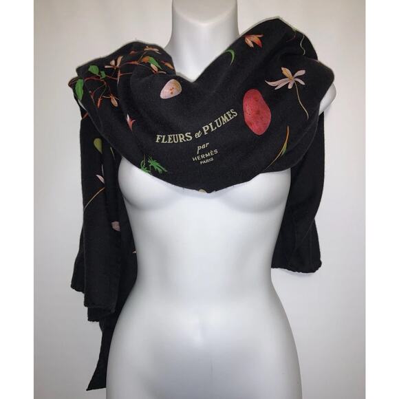Hermes cashmere silk 54"x54" shawl Fleurs Et Plumes Black Floral 140 cm scarf