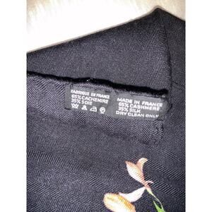 The Hermes cashmere silk shawl in Fleurs Et Plumes Black Floral pattern is a luxurious and versatile accessory for women. Made in France, this shawl features a beautiful floral design in blue, adding a touch of elegance to any outfit. The cashmere material ensures warmth and softness, making it perfect for various occasions. The shawl is 54"x54" (140 cm) in size, ideal for wearing as a wrap or covering your shoulders in style.