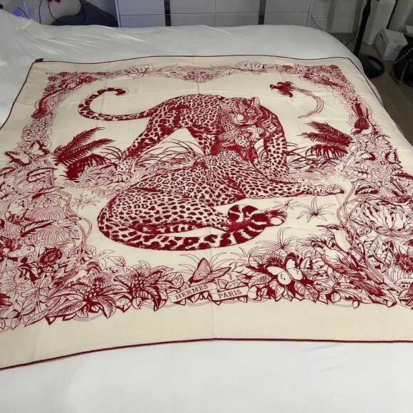Authentic Hermès Paris Cashmere & Silk Shawl – “Single Love” Leopard Design