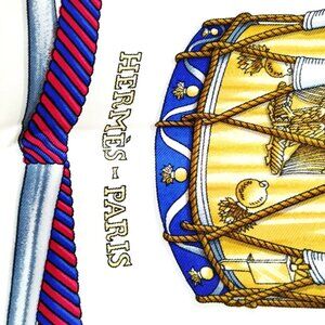 Hermes scarf Carre 90 Les Tambours Blue Silk100% 279-071525