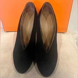Authentic HermΔs (Florida pumps) or like booties. Black suede. Includes box, dust bag, extra heel tips & paper (see photo).