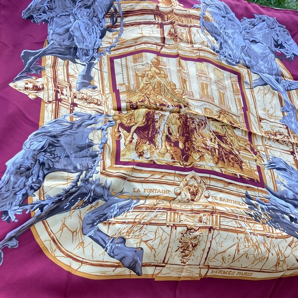 Hermes silk Carre 90 cm La Fontaine de Bartholdi vintage Horses