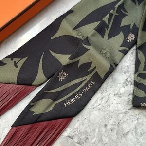 Hermes silk and leather fringe twilly bnib authentic hard to get