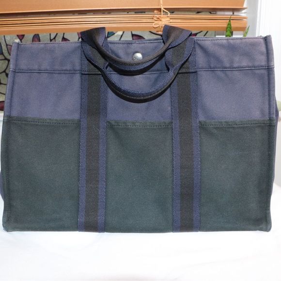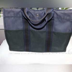 Authentic Hermes Tote. Some fading of the navy color, otherwise in great condition.