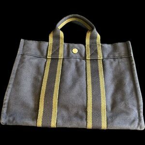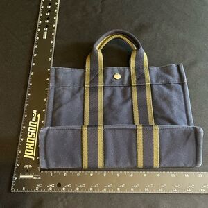 Hermes Dark Blue and Dark Green Tote Bag Good Condition