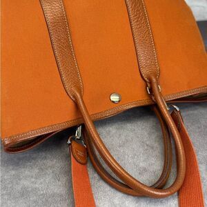 Hermes Garden Party Small Orange Toile Leather Canvas Tote Bag