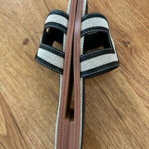 Elegant Hermese sandals with a bold black and white pattern. Perfect for stylish outings.