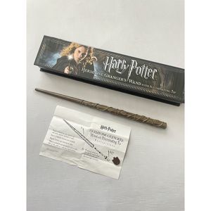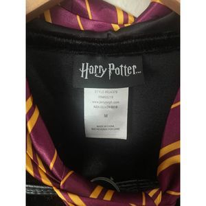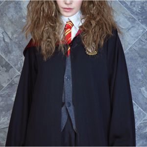3-pc Hermione Granger Halloween/Cosplay Costume: Includes all black Harry Potter brand hooded robe/cloak/cape in size medium/med/M, tie/necktie, and light-up wand from Barnes & Noble. (Wand tested before listing; works great.) Wand lights up when you wave it, then goes off when you wave it again. Requires 2 AAA batteries which are not included. A fun costume for Halloween, or just for imaginary play around the house! Your Gryffindor wizard can create her own spells and pretend she's at Hogwartz every day!