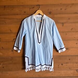 Hermoza Monica Tunic Robin Blue White Mini Dress Cover Up Small Boho Beachy