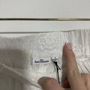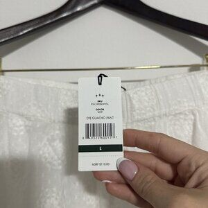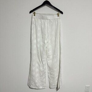 Hermoza Wide Leg Pants White Floral Elastic Waist Size Large Flowy Beach Slit