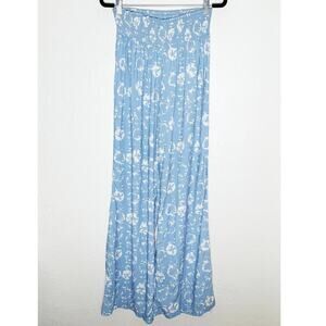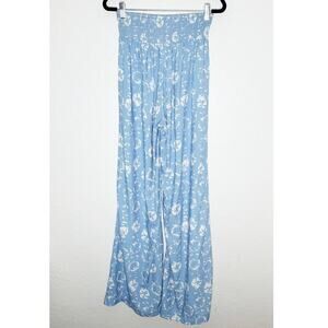 Hermoza Women's Nora Wide Leg Cover Up Pants In Sea Blue White Sand Dollar Smocked Waist Palazzo Style Beachy Vacation Resort Wear