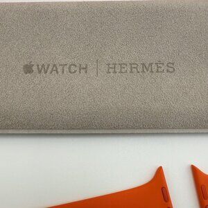 A stylish orange Hermès band designed for Apple Watch, offering a blend of luxury and functionality with durable silicone material.