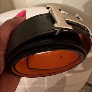 Elegant Hermès black leather belt featuring a striking silver buckle. Perfect for adding a touch of luxury to any outfit. Never worn.