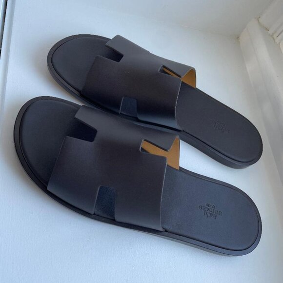 Hermès Black Oran Sandals Size 46 | Leather Slides | Made in Italy