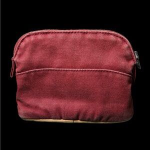 This is your chance to own a piece of Hermès luxury at a truly accessible price. Crafted in deep red canvas with natural leather piping and the signature Hermès H stitched logo, this pouch is perfect as a cosmetic case or small catchall. The leather has developed a beautiful patina with signs of wear appropriate for age, and the canvas remains rich and vibrant. The iconic Hermès zipper pull and interior “Hermès Paris” label add signature prestige.