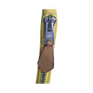 Very good pre-owned condition. Some faint marks consistent with use. Zipper functions smoothly; leather pull is cracked. Clean interior. A rare, cheerful addition to any Hermès collection.