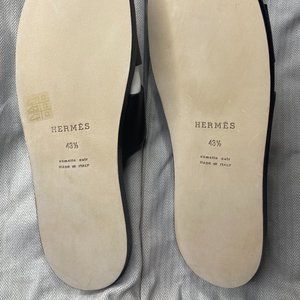 Brand New Hermès Men's Izmir Sandals in coveted and hard to get Noir Calfskin Leather with soft Suede bottom