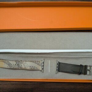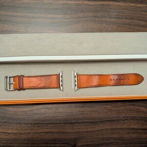 Hermes Brique/Beton single tour leather apple watch strap 5. Includes additional band; pre-owned