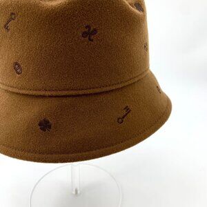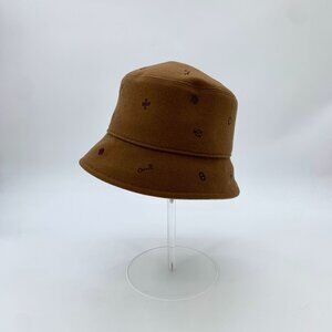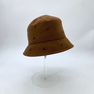Hermès Brown Cashmere Embroidered Fisherman Hat W/ Silk Lining & Tags Size 57