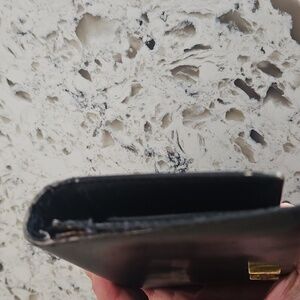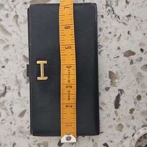 Elegant Hermès Bean wallet. Gold-tone clasp detail.