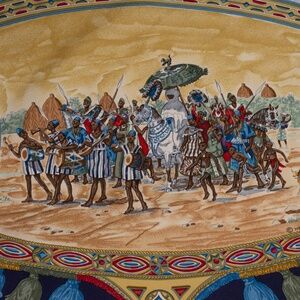 With its bold composition and detailed storytelling, “Cavaliers Peuls” is both a wearable masterpiece and a collector’s favorite — a true statement of artistry and culture.